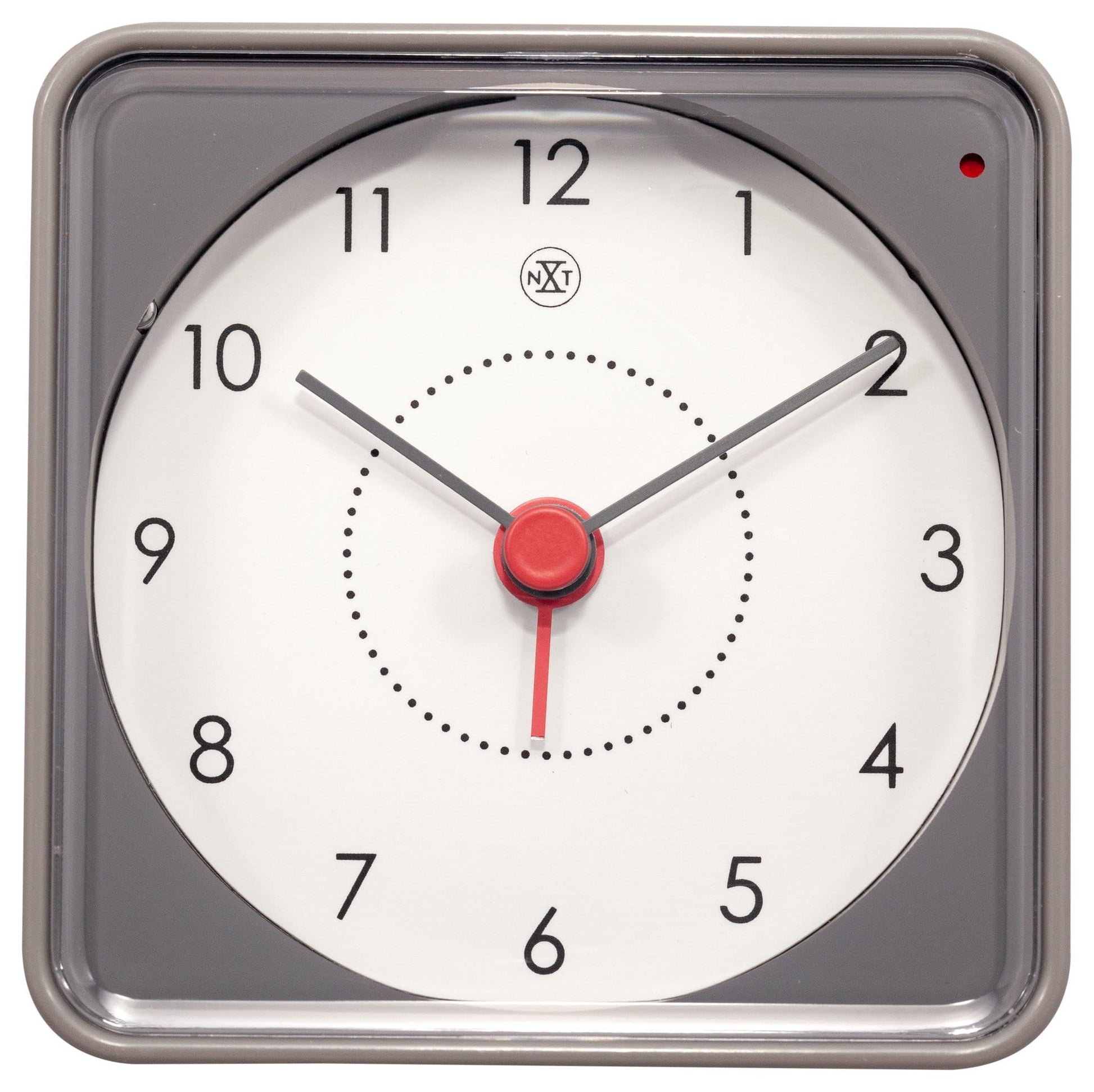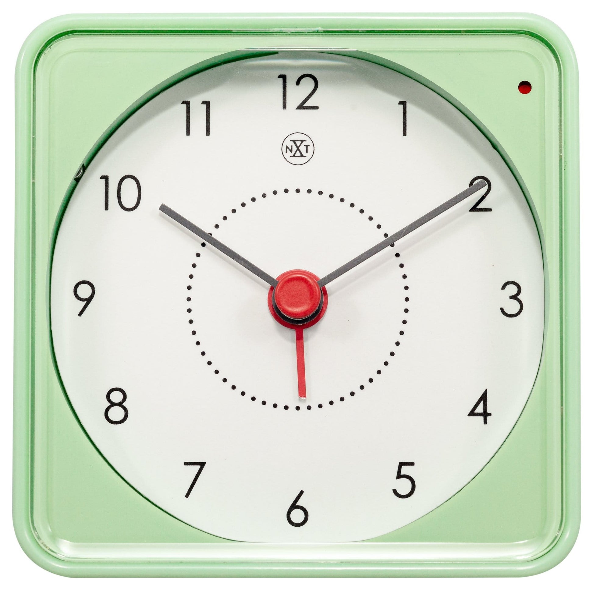 The nXt "Nathan" is a square alarm clock (7.3 x 7.3 x 3.3 cm). When the alarm goes off you hear a beep signal which is getting faster. The alarm clock has a snooze function and a small light. You turn on the light by pressing the snooze/light button. With the the silent movement this alarm clock wakes you up, not keeps you up! This clock runs on 1x AA battery (not included).