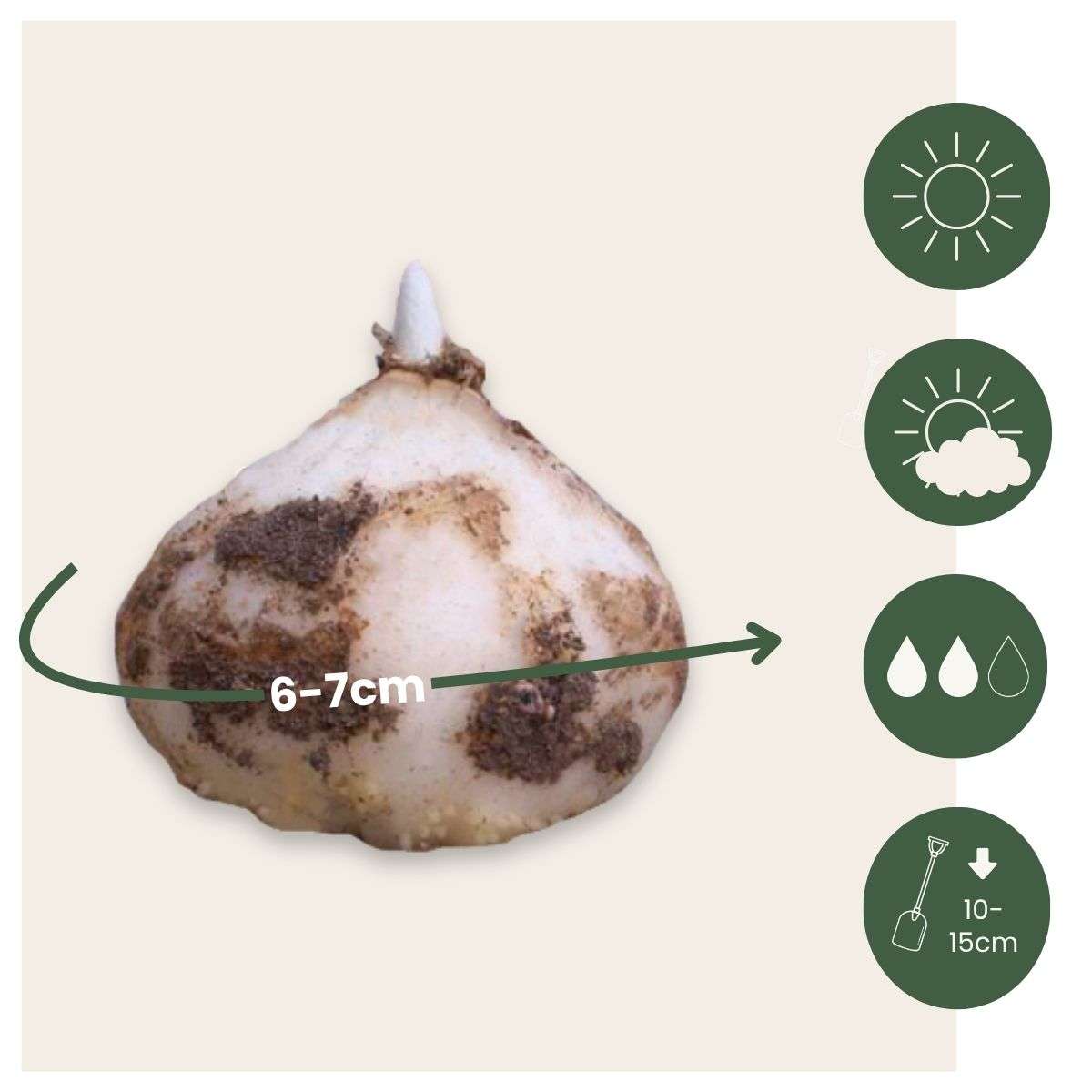 Die Blumenzwiebeln haben bei der Lieferung einen Umfang von ca. 6/7 cm.