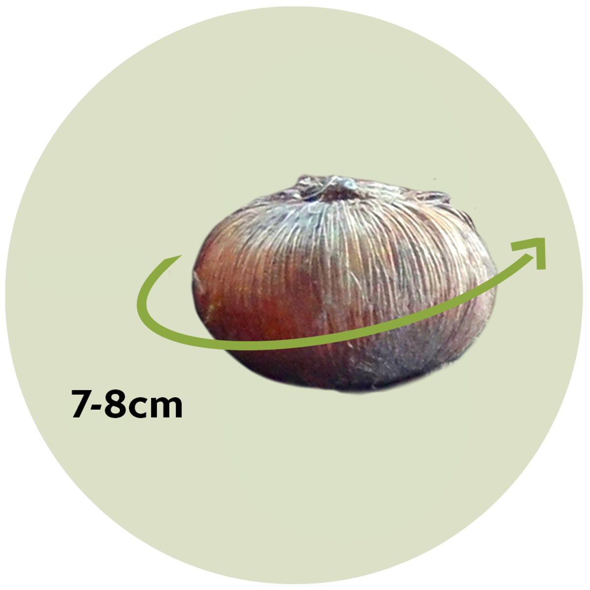 Die Blumenzwiebeln haben bei der Lieferung einen Umfang von ca. 7/8 cm.