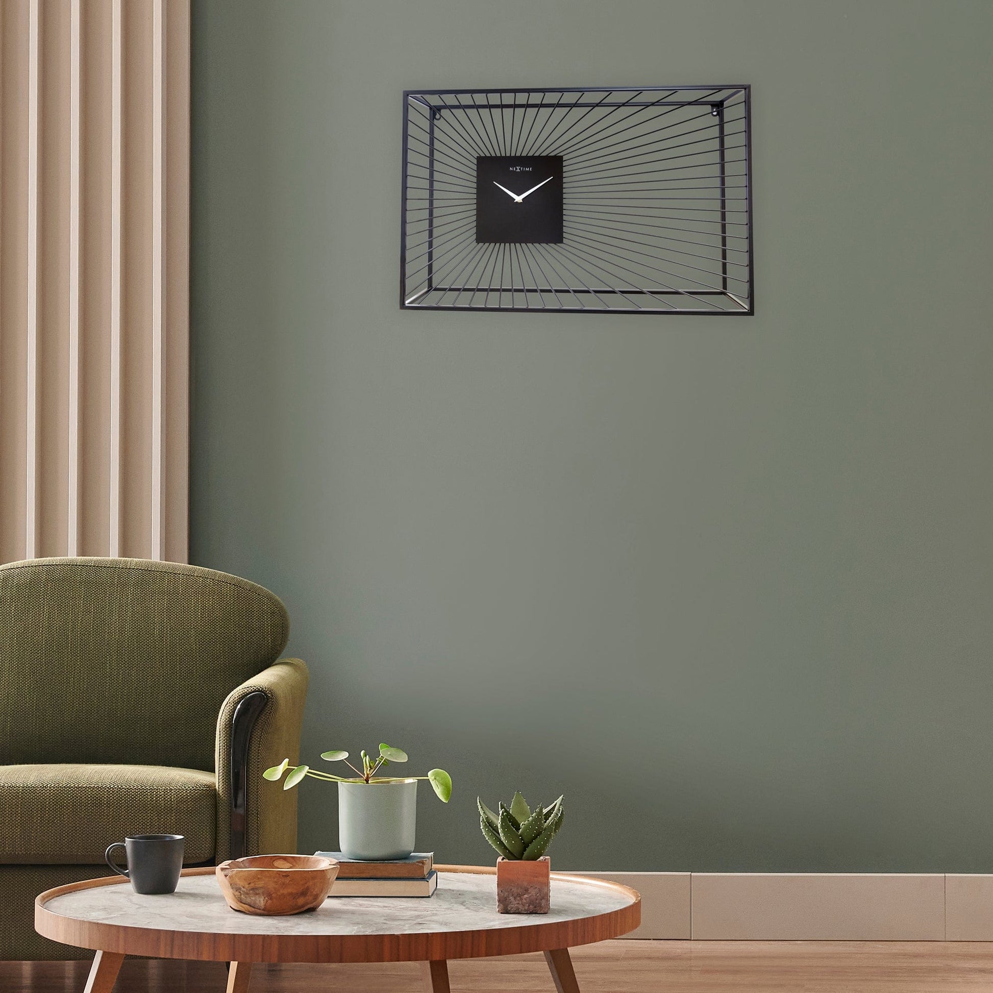 NeXtime's Vasco large silent wall clock (70x45cm) is a modern metal sculpture. Black metal wires radiating from the dial elevate the clock from being a time device to a centrepiece art display in the room. This clock uses 1 x AA battery (not included).