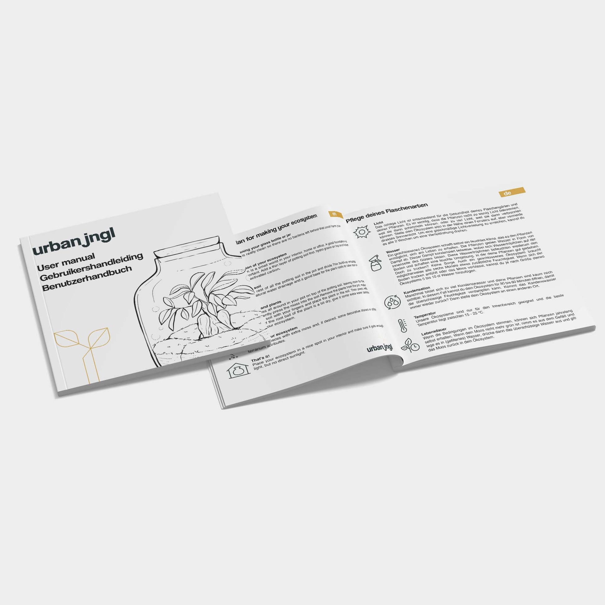 Our plant terrariums come as a Do-It-Yourself (DIY) package. Upon receipt, you will assemble your new green friend in no time using the easy 5-step plan. But don't worry, everything you need to know about your plant terrarium is explained to you in 5 simple steps.
