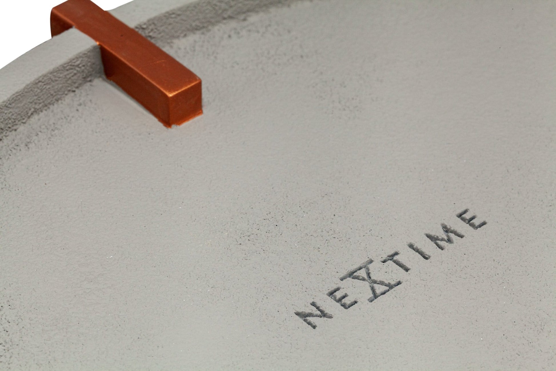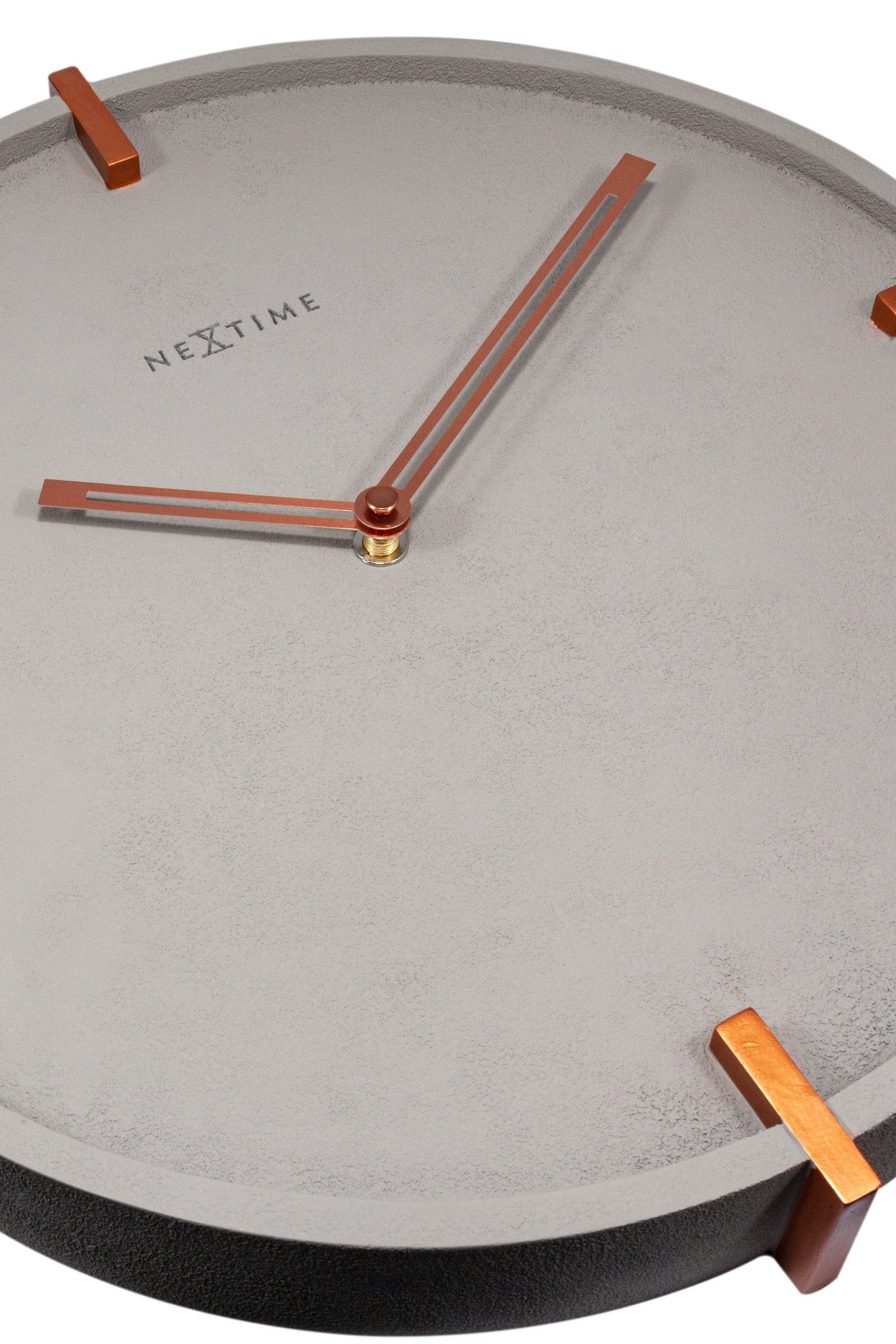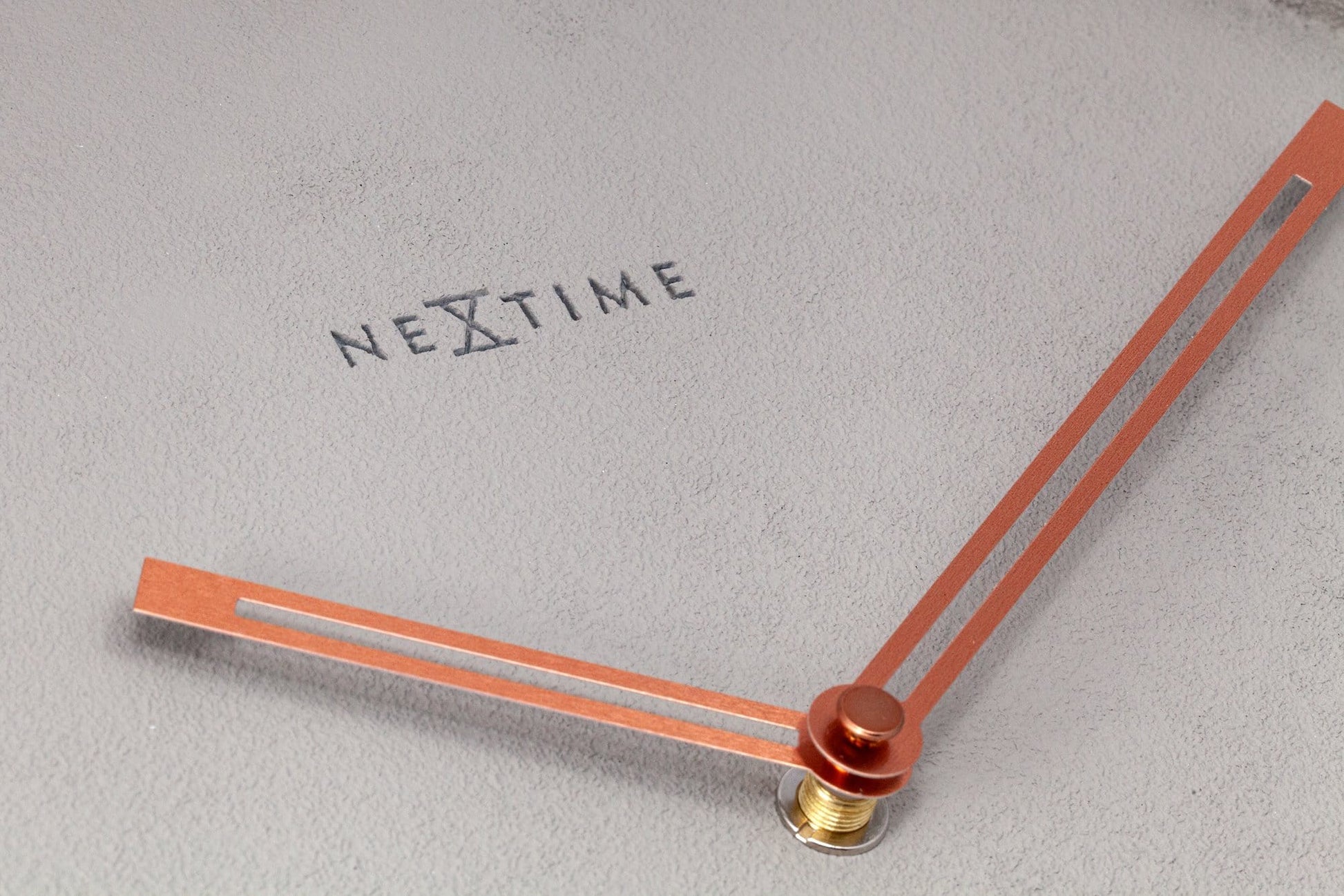 The NeXtime "Mohawk Wall' is a round wall clock (Ø32 cm) designed by Romee Nibbering. The grey concrete material matches perfectly with the copper elements and is very stylish. The cut out hands are a special detail. The clock is silent and runs on 1x AA battery (not included).