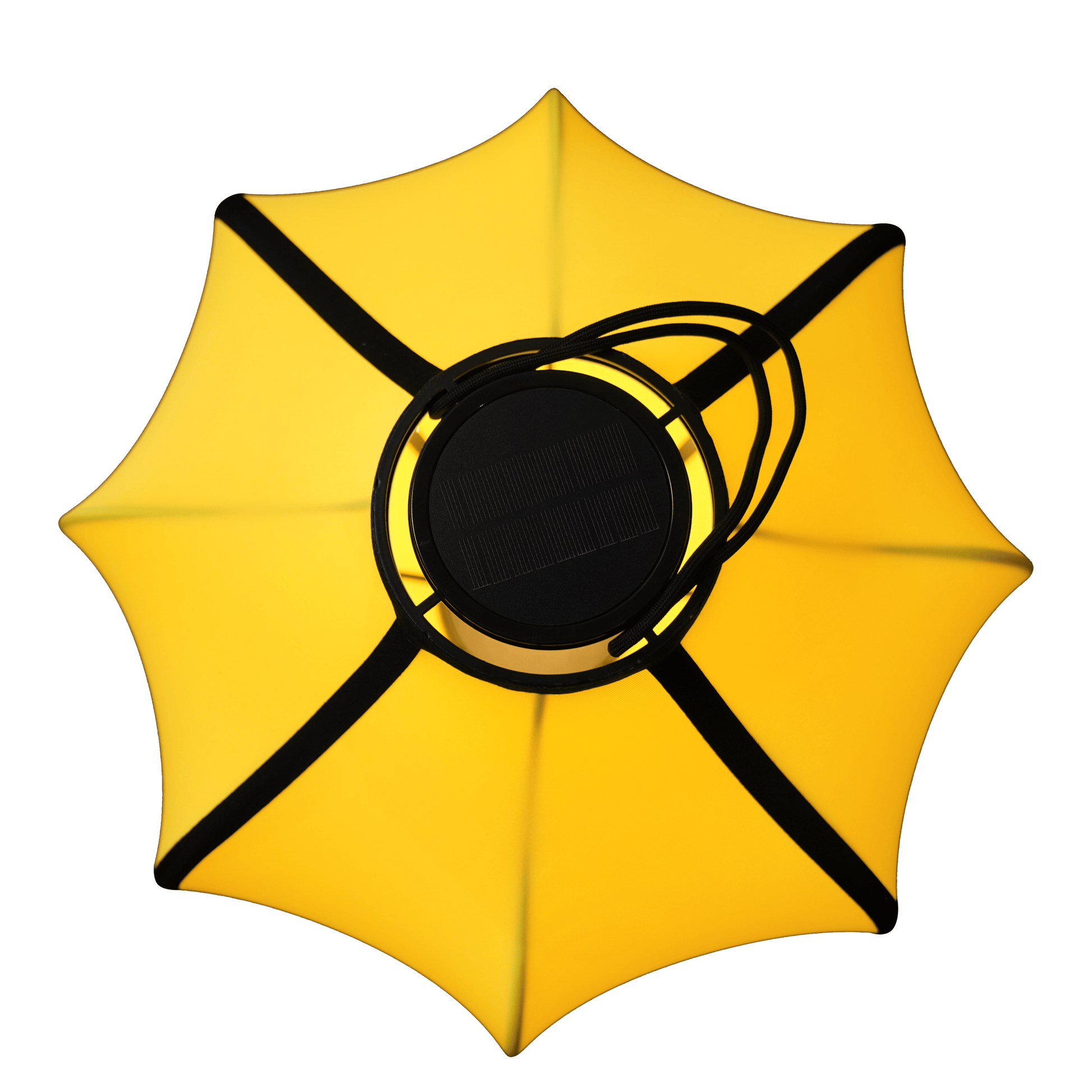 Light source comes separate (not included) and is rechargeable by USB or solar energy.