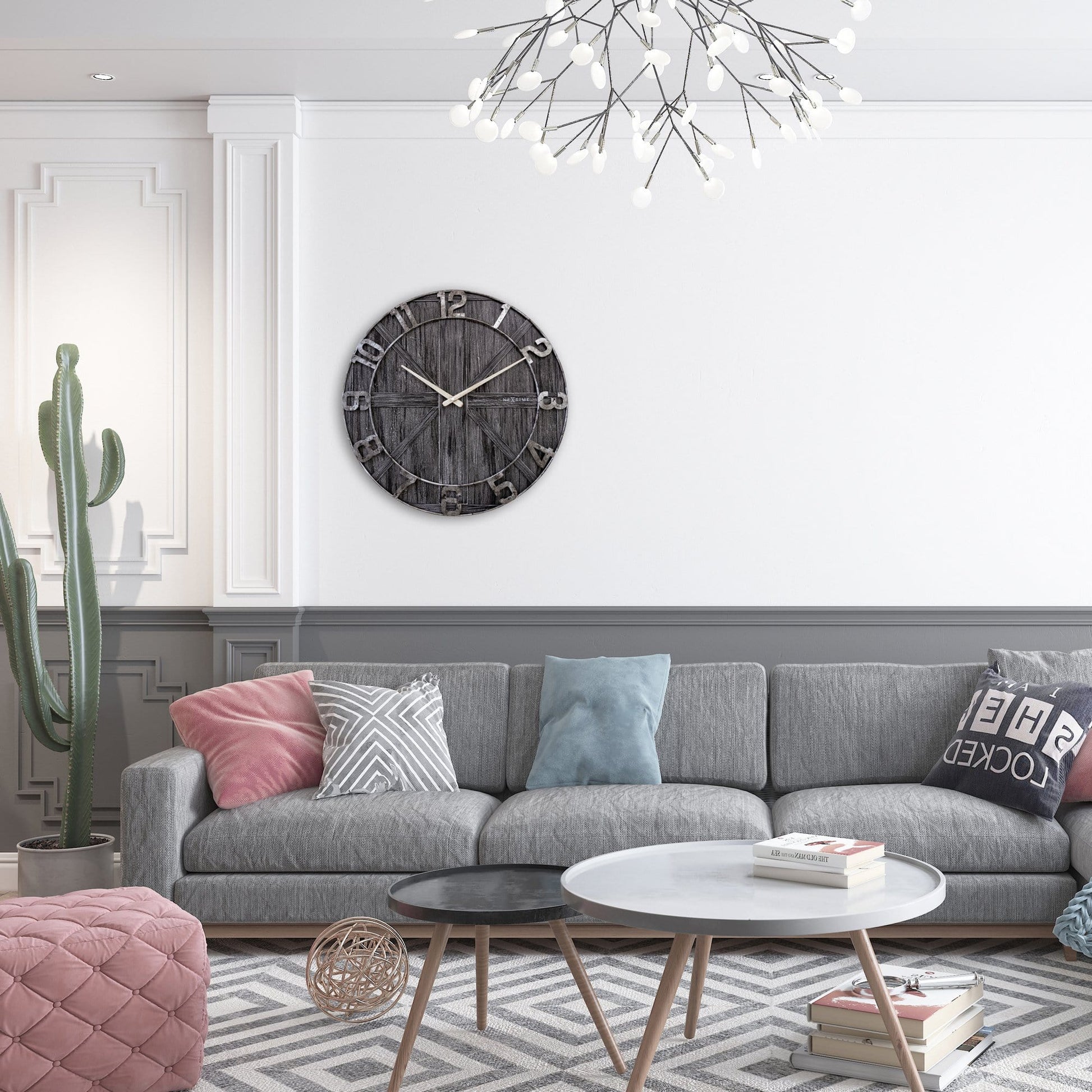Large wall clock - 50cm - Silent - Wood - Metal - "York"