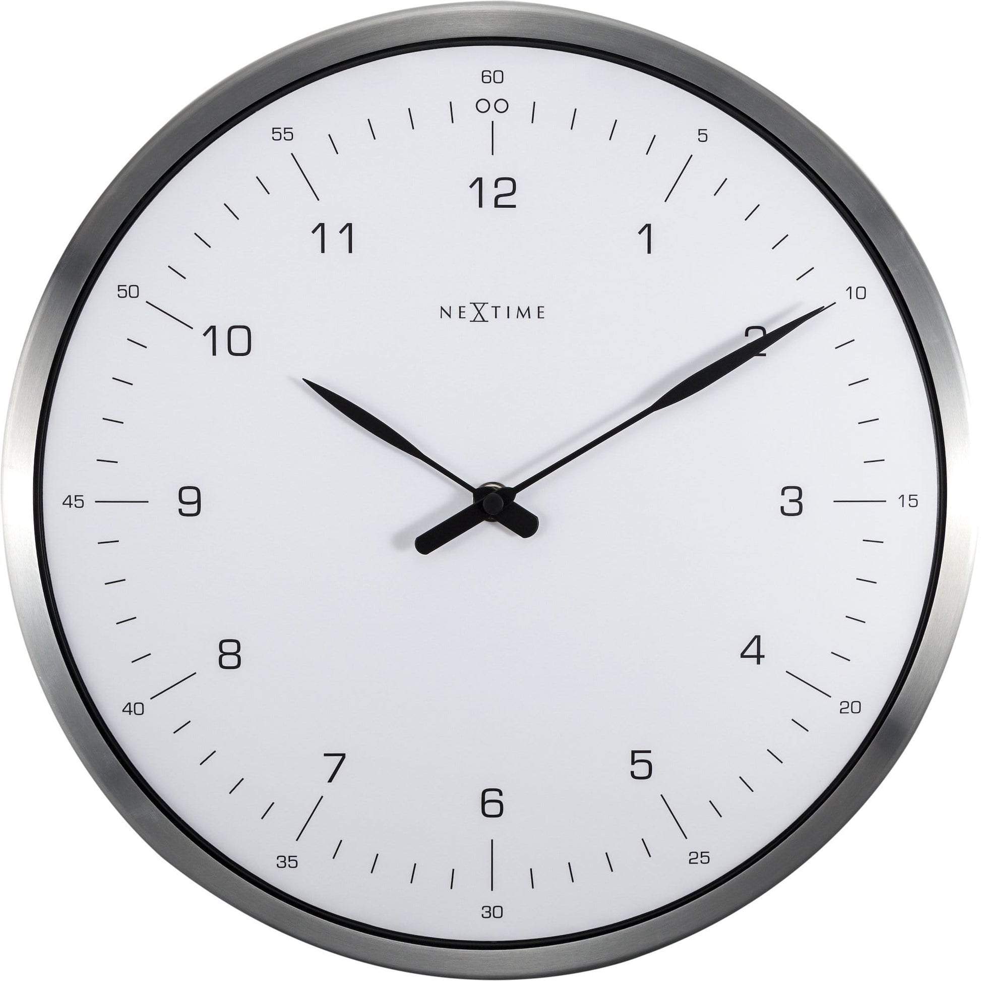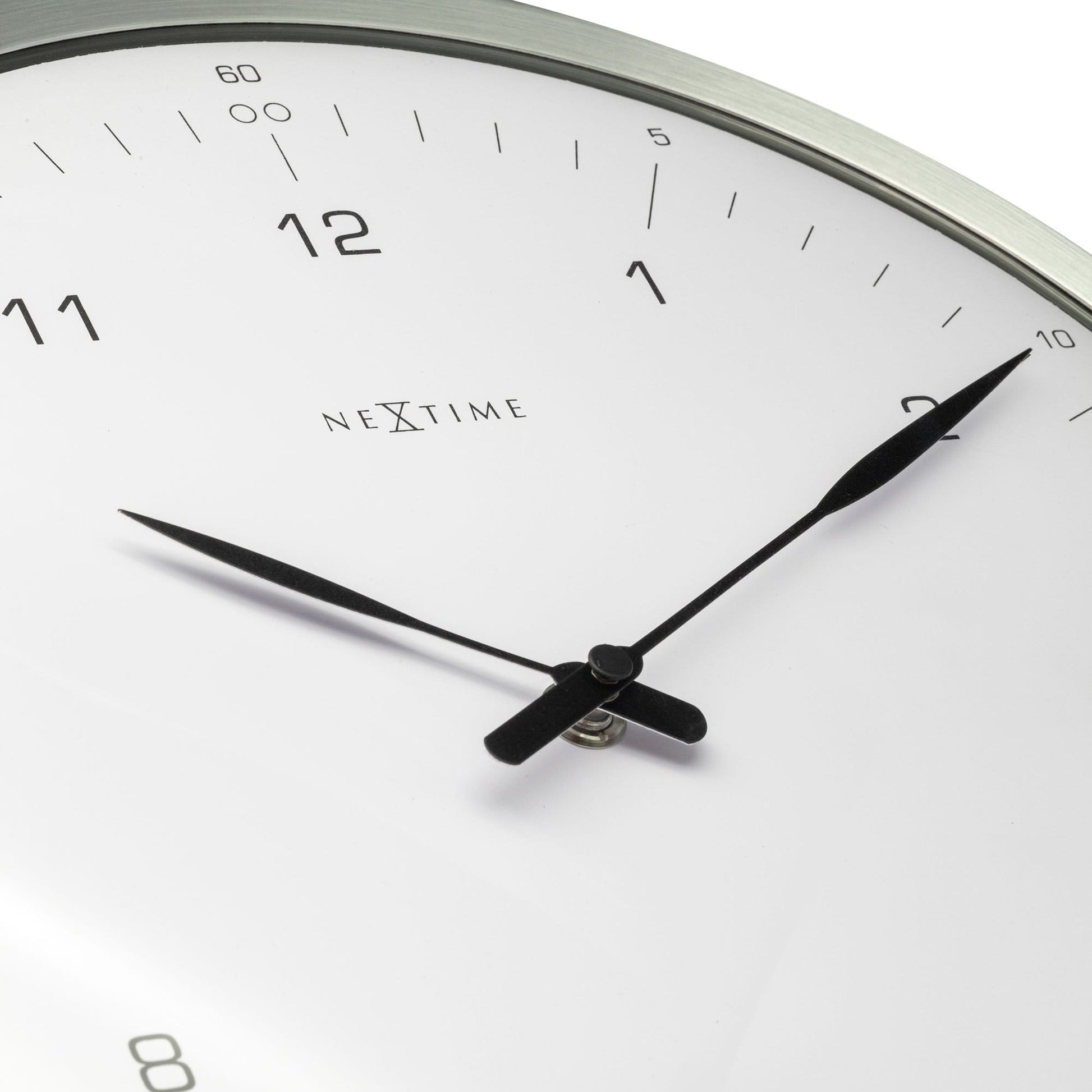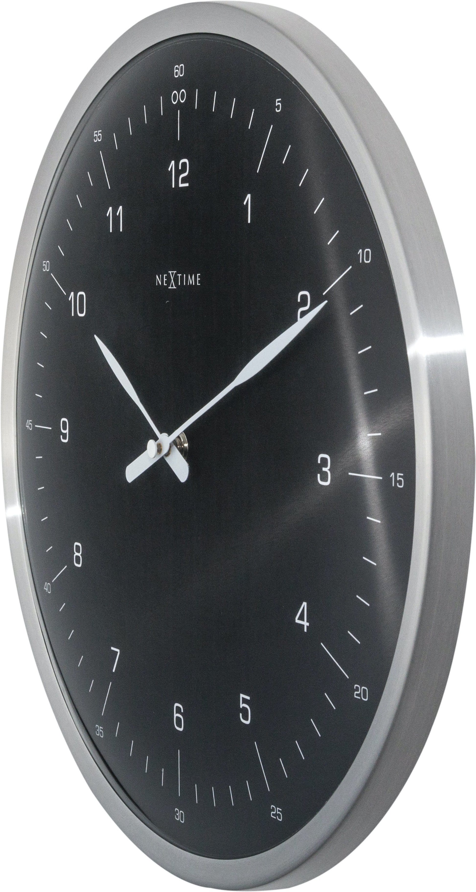 The NeXtime "60 minutes" is a wall clock with a shiny metal case and a professional styling. The clock shows the hours and minutes in an hour. The dome shaped glass makes this clock unique, perfect to hang in a working space. This clock is silent and runs on 1 AA battery (not included).
