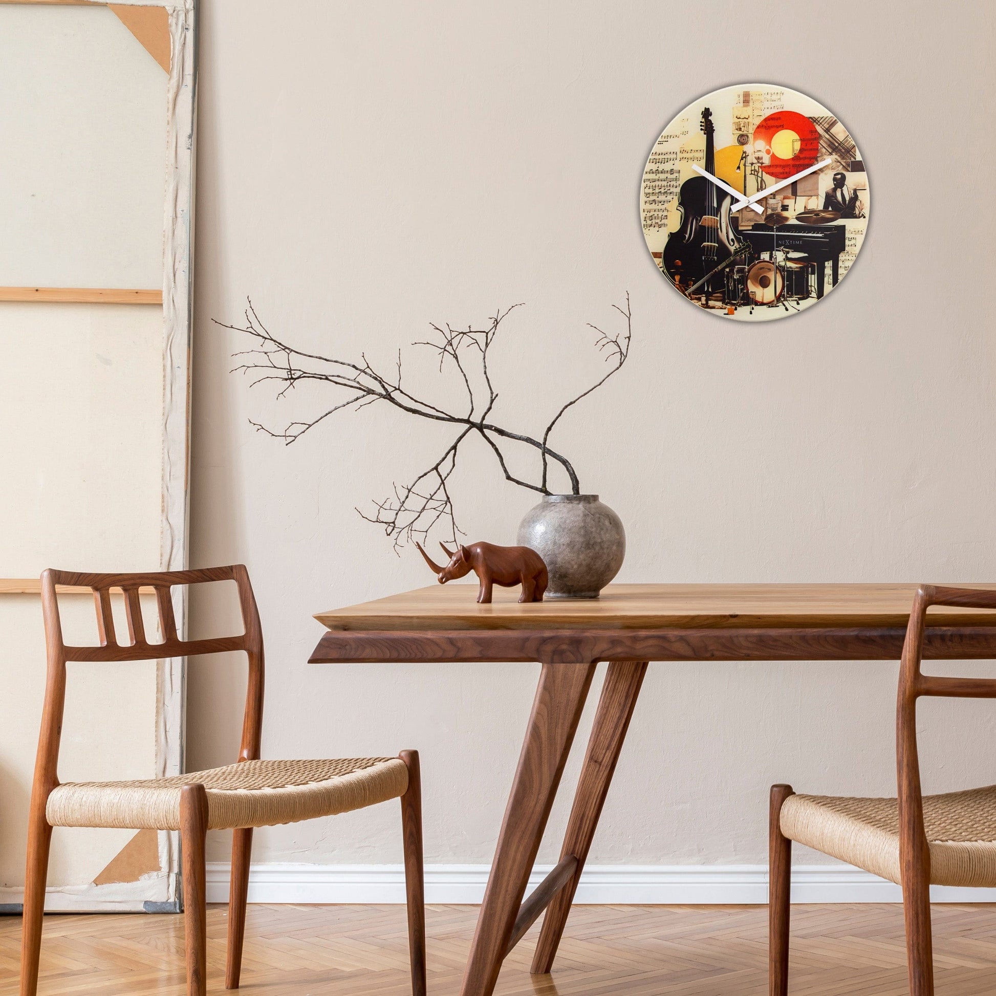 NeXtime 'Blues' wall clock -  43cm glass clock is inspired by the music trend. Its vibrant colours and bold graphics make it more than a timepiece – it’s a piece of art. The silent clock requires 1 x AA battery (not included). Let your walls resonate a sentimental melody of style and colour with 'Blues'!