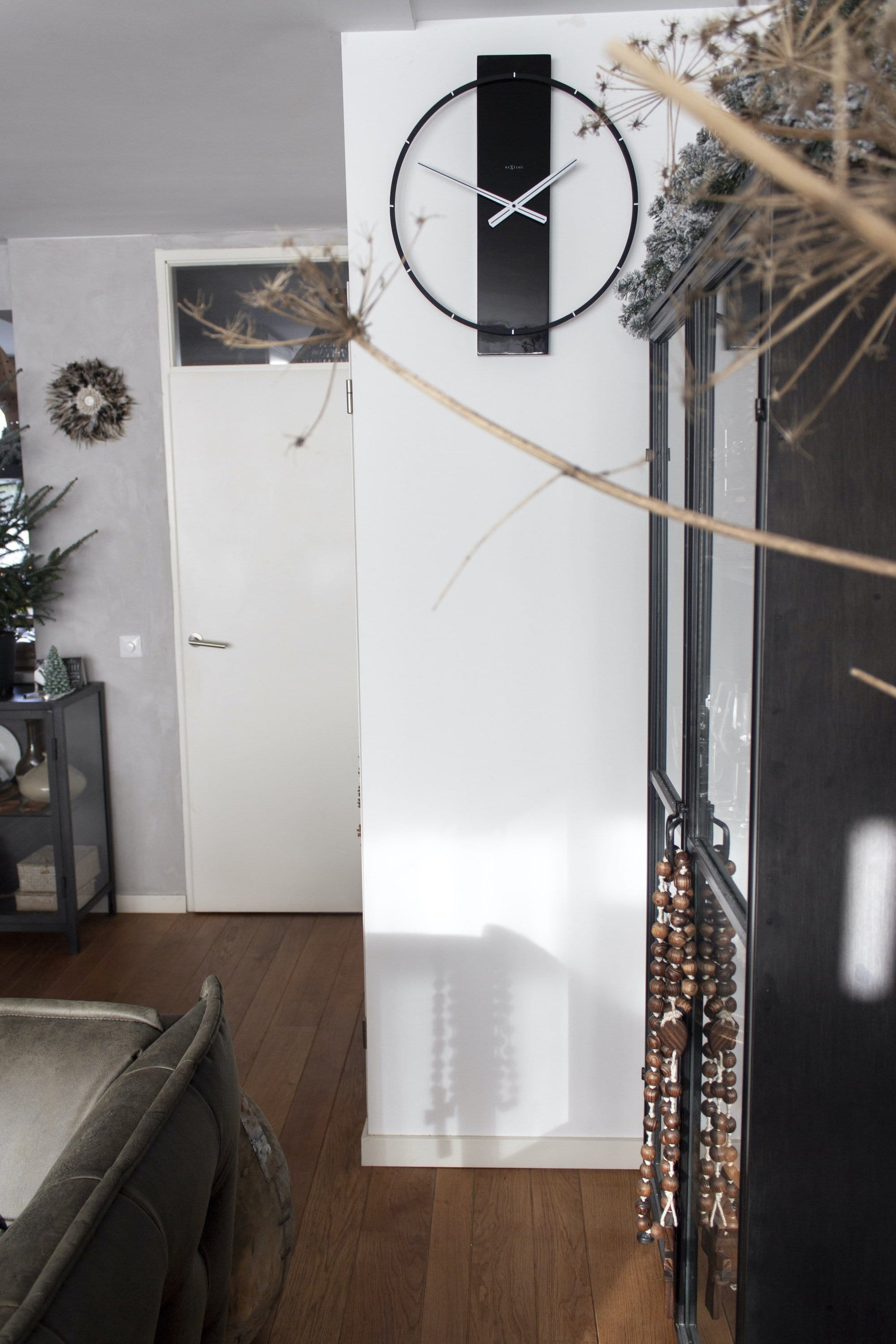 The NeXtime "Carl" is a large wall clock made of wood and stainless steel. This minimalist design combines the soft natural feeling of the wood with an industrial feeling because of the metal. The clock has silver hands and is silent. It runs on 1 AA battery (not included).